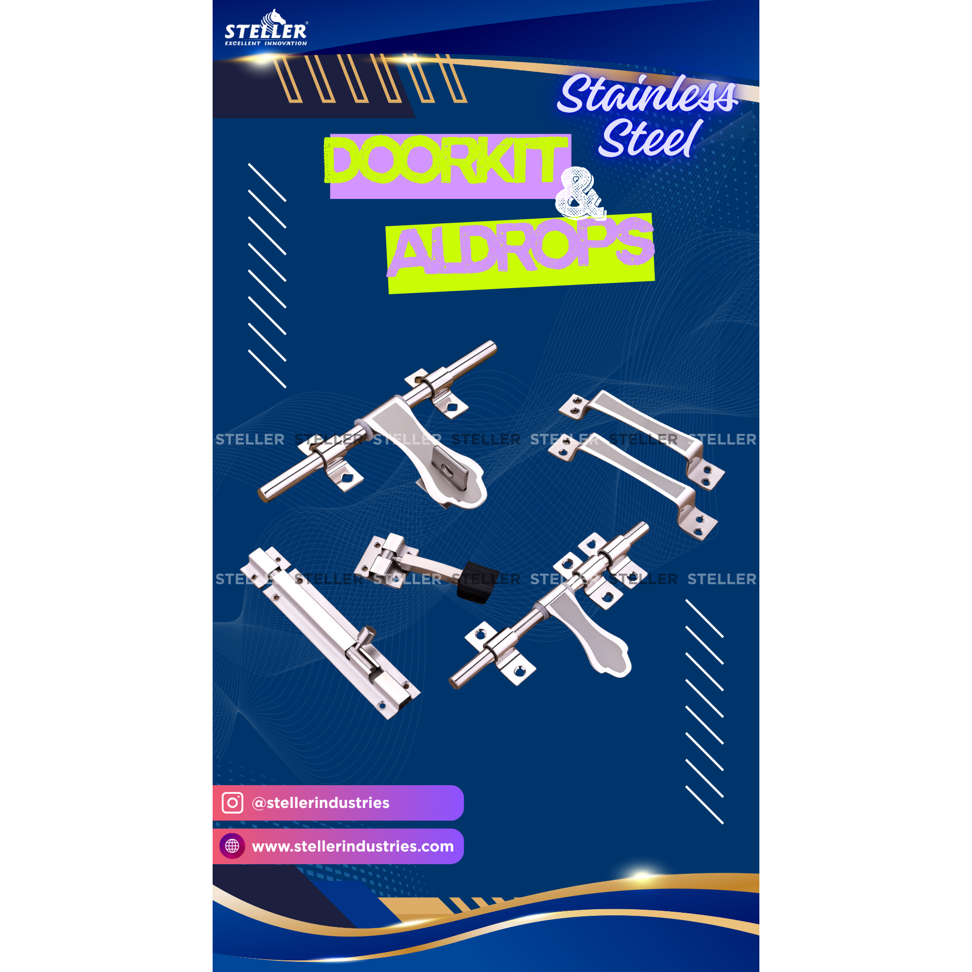 Upgrade your home or office with our Premium Stainless Steel Door Kit, crafted with precision in Rajkot, Gujarat – Made in India. This full door kit is made from high-quality SS 202 grade stainless steel, ensuring durability, strength, and rust resistance for long-term use. Each kit includes: 1 Aldrop with laser marking for a premium finish 2 Stylish door handles with ergonomic grip 1 Durable door stopper 1 Secure tower bolt 1 Reliable door latch Whether you're renovating or building new, this set offers sleek modern design, superior cutting, and long-lasting performance – the perfect combination of style and security. ✅ Key Features: Made from SS 202 Grade Stainless Steel Precision cutting with premium polish finish Corrosion-resistant and weatherproof 100% Made in India – Rajkot, Gujarat Ideal for both residential & commercial doors Premium stainless steel door kit SS 202 door accessories Complete door hardware set Stainless steel aldrop with laser mark Door handle and latch kit Made in India door fittings Modern door kit Rajkot Stainless steel hardware manufacturer #StainlessSteelDoorKit #SS202Grade #MadeInIndia #RajkotMade #StellerIndustries #ModernDoorHardware #DoorAccessories #DoorKitCompleteSet #LaserMarkedAldrop #StainlessSteelHandles #HomeHardware #InteriorHardware #SSDoorFittings #QualityDoorFittings #InnovationInHardware #DoorSolutions #DoorStyleUpgrade