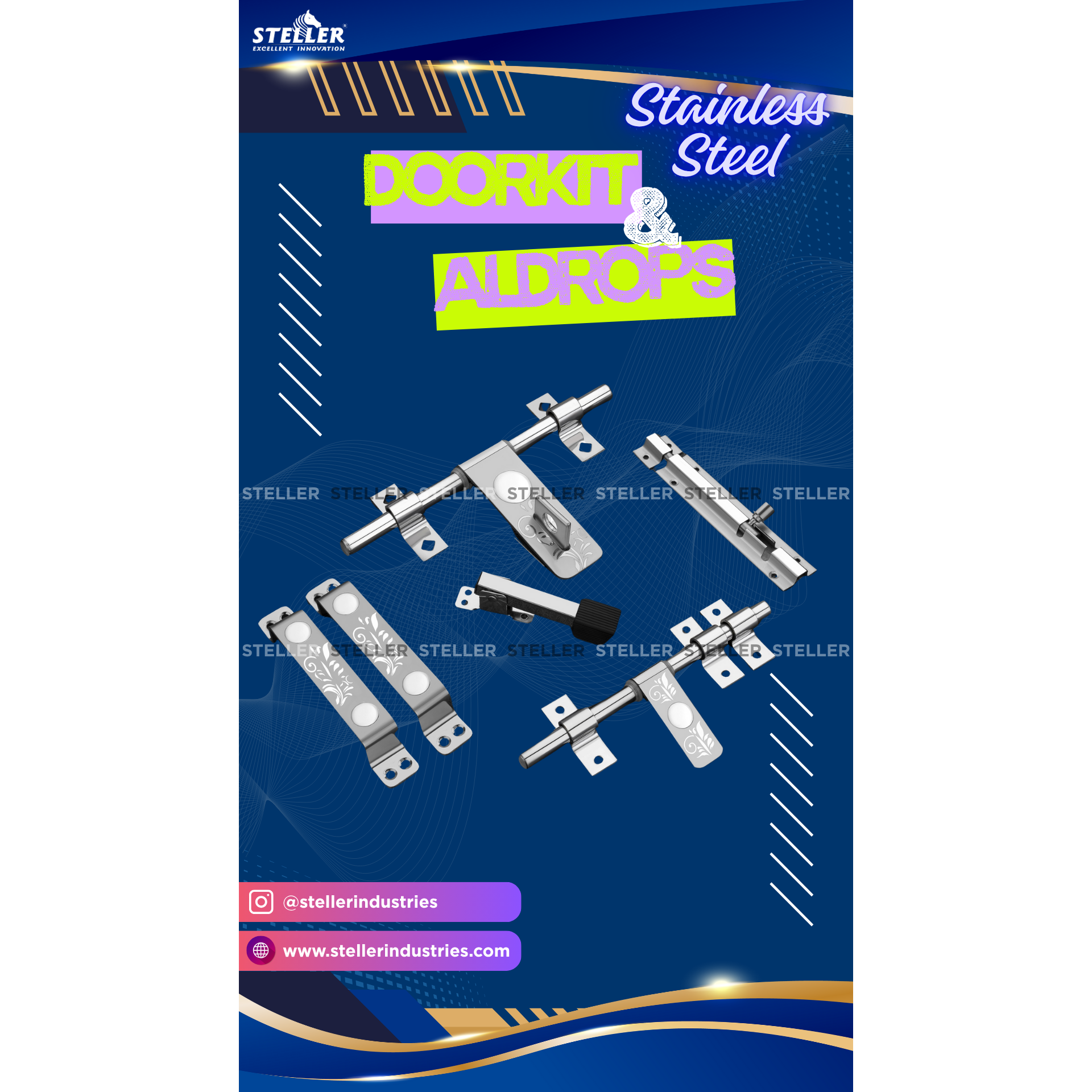 Upgrade your home or office with our Premium Stainless Steel Door Kit, crafted with precision in Rajkot, Gujarat – Made in India. This full door kit is made from high-quality SS 202 grade stainless steel, ensuring durability, strength, and rust resistance for long-term use. Each kit includes: 1 Aldrop with laser marking for a premium finish 2 Stylish door handles with ergonomic grip 1 Durable door stopper 1 Secure tower bolt 1 Reliable door latch Whether you're renovating or building new, this set offers sleek modern design, superior cutting, and long-lasting performance – the perfect combination of style and security. ✅ Key Features: Made from SS 202 Grade Stainless Steel Precision cutting with premium polish finish Corrosion-resistant and weatherproof 100% Made in India – Rajkot, Gujarat Ideal for both residential & commercial doors Premium stainless steel door kit SS 202 door accessories Complete door hardware set Stainless steel aldrop with laser mark Door handle and latch kit Made in India door fittings Modern door kit Rajkot Stainless steel hardware manufacturer #StainlessSteelDoorKit #SS202Grade #MadeInIndia #RajkotMade #StellerIndustries #ModernDoorHardware #DoorAccessories #DoorKitCompleteSet #LaserMarkedAldrop #StainlessSteelHandles #HomeHardware #InteriorHardware #SSDoorFittings #QualityDoorFittings #InnovationInHardware #DoorSolutions #DoorStyleUpgrade