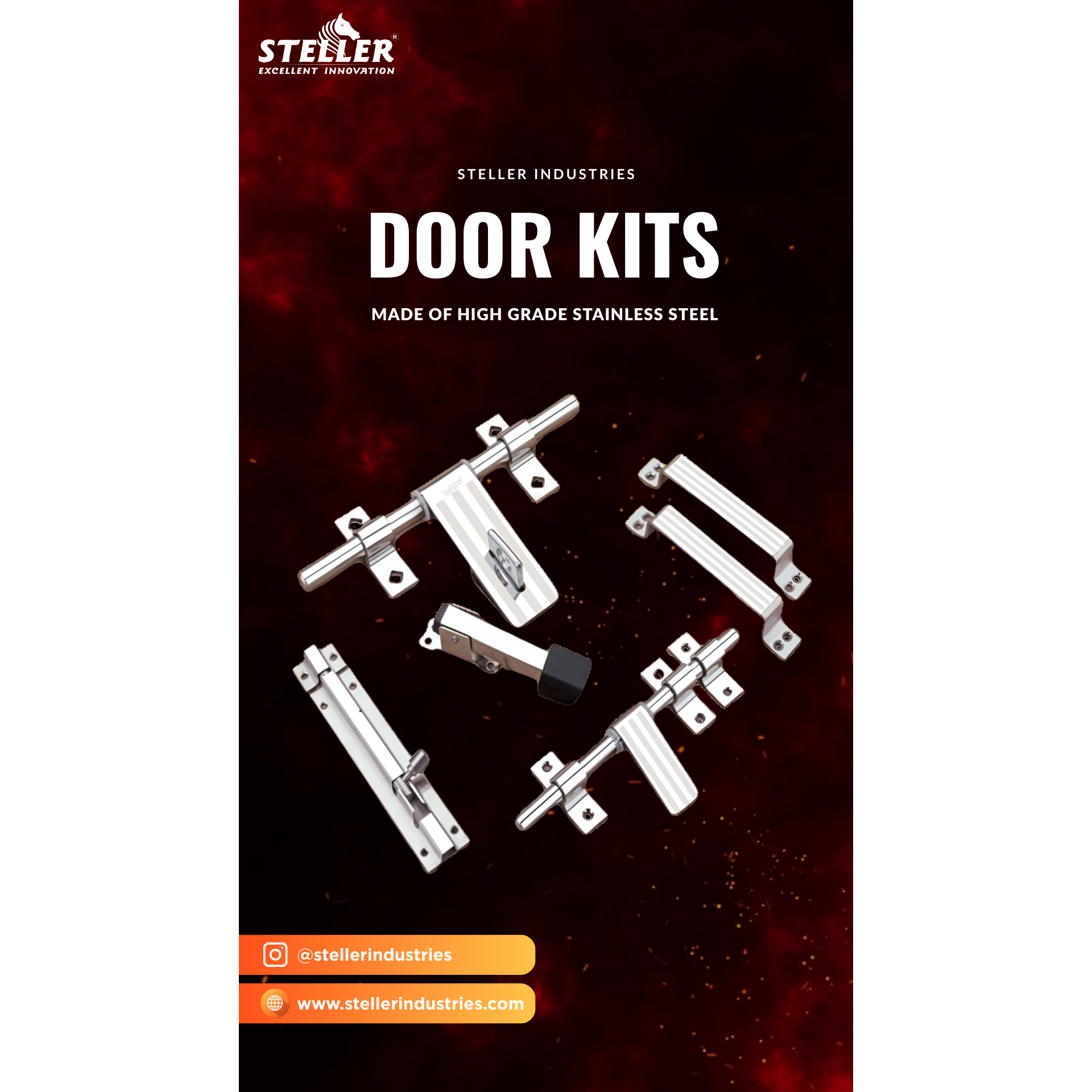 Upgrade your home or office with our Premium Stainless Steel Door Kit, crafted with precision in Rajkot, Gujarat – Made in India. This full door kit is made from high-quality SS 202 grade stainless steel, ensuring durability, strength, and rust resistance for long-term use. Each kit includes: 1 Aldrop with laser marking for a premium finish 2 Stylish door handles with ergonomic grip 1 Durable door stopper 1 Secure tower bolt 1 Reliable door latch Whether you're renovating or building new, this set offers sleek modern design, superior cutting, and long-lasting performance – the perfect combination of style and security. ✅ Key Features: Made from SS 202 Grade Stainless Steel Precision cutting with premium polish finish Corrosion-resistant and weatherproof 100% Made in India – Rajkot, Gujarat Ideal for both residential & commercial doors Premium stainless steel door kit SS 202 door accessories Complete door hardware set Stainless steel aldrop with laser mark Door handle and latch kit Made in India door fittings Modern door kit Rajkot Stainless steel hardware manufacturer #StainlessSteelDoorKit #SS202Grade #MadeInIndia #RajkotMade #StellerIndustries #ModernDoorHardware #DoorAccessories #DoorKitCompleteSet #LaserMarkedAldrop #StainlessSteelHandles #HomeHardware #InteriorHardware #SSDoorFittings #QualityDoorFittings #InnovationInHardware #DoorSolutions #DoorStyleUpgrade