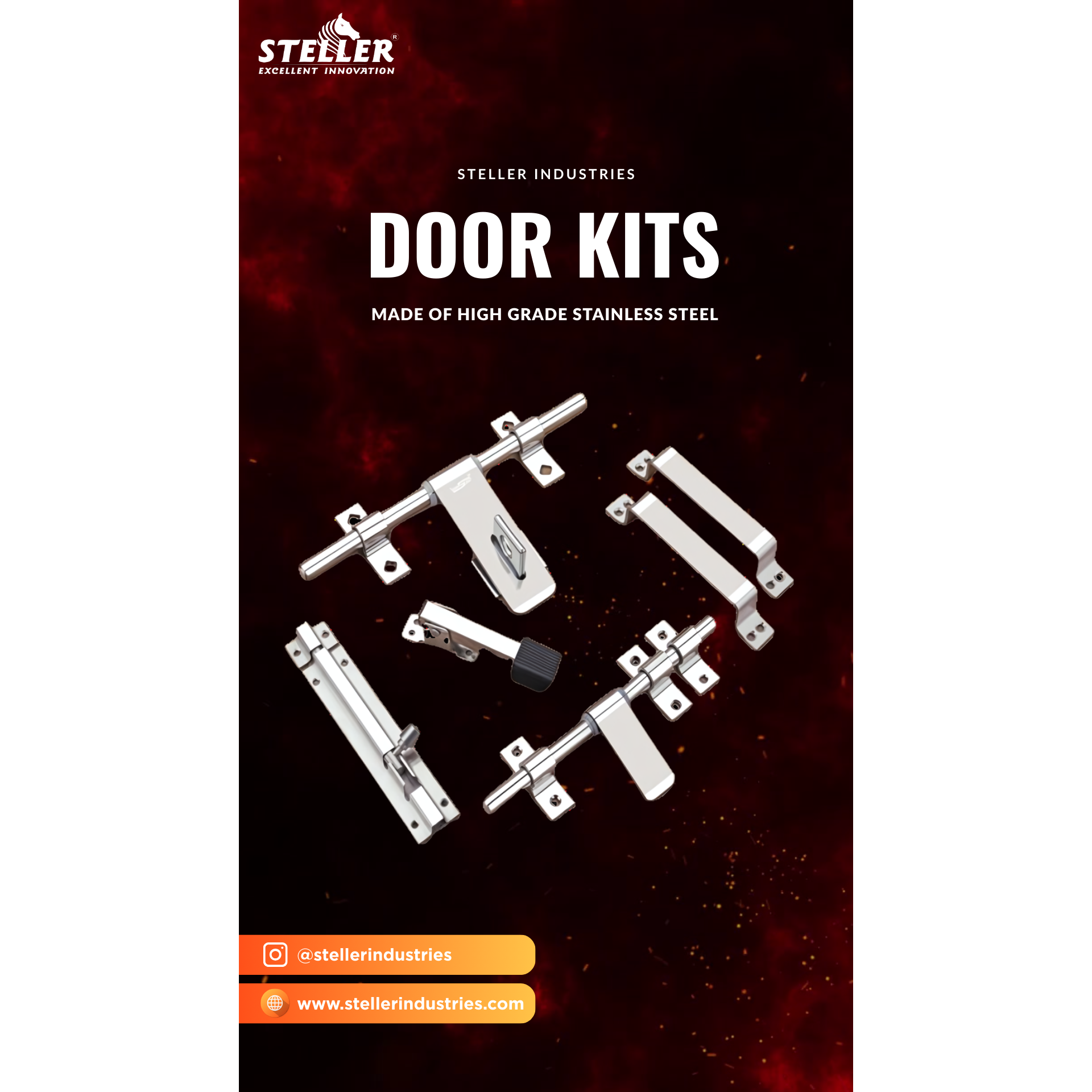 Upgrade your home or office with our Premium Stainless Steel Door Kit, crafted with precision in Rajkot, Gujarat – Made in India. This full door kit is made from high-quality SS 202 grade stainless steel, ensuring durability, strength, and rust resistance for long-term use. Each kit includes: 1 Aldrop with laser marking for a premium finish 2 Stylish door handles with ergonomic grip 1 Durable door stopper 1 Secure tower bolt 1 Reliable door latch Whether you're renovating or building new, this set offers sleek modern design, superior cutting, and long-lasting performance – the perfect combination of style and security. ✅ Key Features: Made from SS 202 Grade Stainless Steel Precision cutting with premium polish finish Corrosion-resistant and weatherproof 100% Made in India – Rajkot, Gujarat Ideal for both residential & commercial doors Premium stainless steel door kit SS 202 door accessories Complete door hardware set Stainless steel aldrop with laser mark Door handle and latch kit Made in India door fittings Modern door kit Rajkot Stainless steel hardware manufacturer #StainlessSteelDoorKit #SS202Grade #MadeInIndia #RajkotMade #StellerIndustries #ModernDoorHardware #DoorAccessories #DoorKitCompleteSet #LaserMarkedAldrop #StainlessSteelHandles #HomeHardware #InteriorHardware #SSDoorFittings #QualityDoorFittings #InnovationInHardware #DoorSolutions #DoorStyleUpgrade