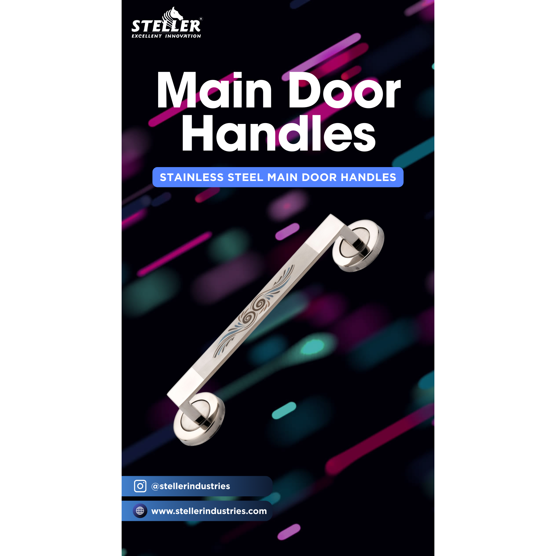 Enhance your entrance with the STELLER Stainless Steel Main Door Handle, a perfect blend of strength, elegance, and functionality. Crafted from premium stainless steel, this handle is built to last with rust-resistance, smooth finishing, and sturdy grip. Available in different sizes, finishes, and stylish patterns, it complements both modern and traditional doors with ease. Whether it’s for residential homes, offices, hotels, or commercial buildings, this designer main door handle ensures durability and adds a touch of luxury to your space. Proudly Made in India, it meets international quality standards, making it the first choice for dealers, wholesalers, architects, and homeowners who value long-lasting quality. stainless steel main door handle, premium door handle, modern stainless steel handle, designer main door handle, heavy duty door handle, stylish stainless steel handle, durable door handle India, high quality door handle, luxury stainless steel handle, main door accessories, door hardware fittings, stainless steel hardware, architectural hardware India, home improvement door handle, rust resistant door handle, premium quality door handle, modern architectural hardware, stainless steel entrance handle, Steller door handle #MainDoorHandle #StainlessSteel #PremiumHardware #DoorAccessories #HomeImprovement #InteriorDesign #ModernHardware #LuxuryHardware #MadeInIndia #StellerIndustries #ArchitecturalHardware #QualityHardware #DurableDesign #StylishHardware #DoorFittings #InteriorSolutions #HomeDecorAccessories #DesignerHandle #SmartHomes #DoorHandles
