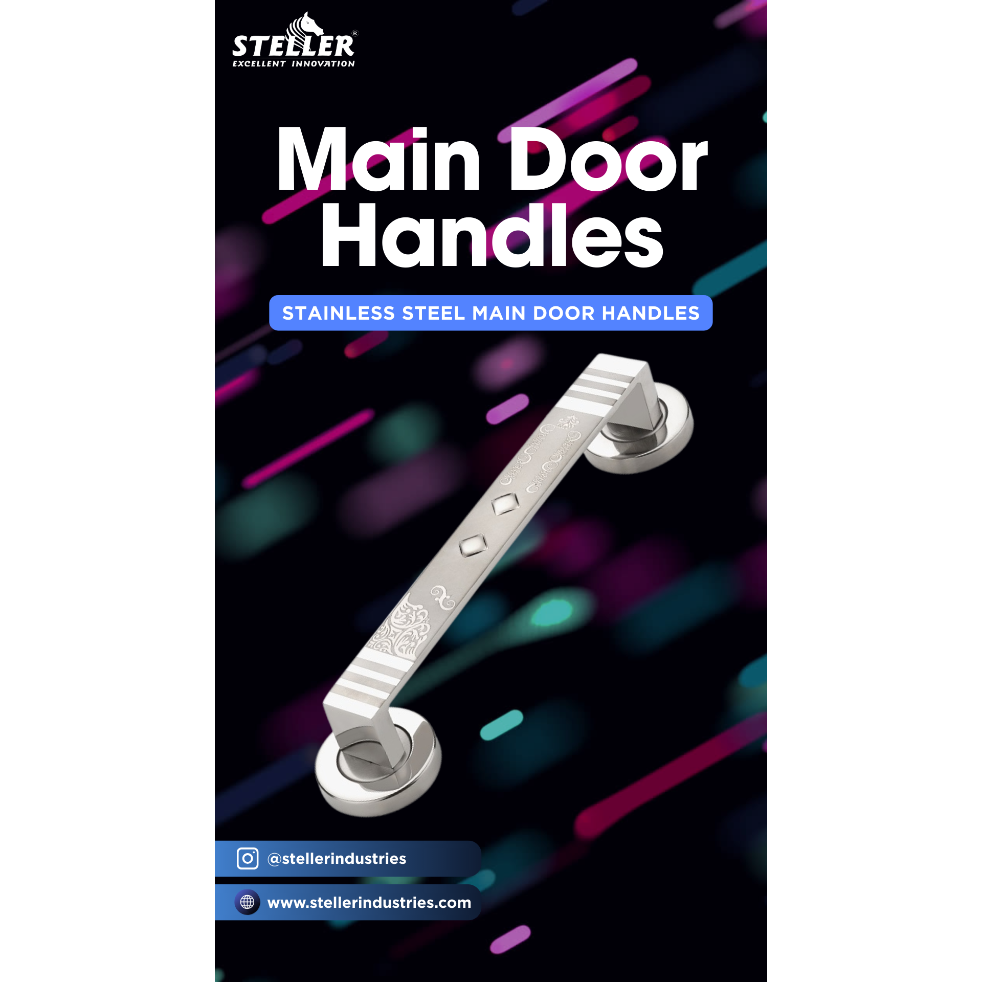 Enhance your entrance with the STELLER Stainless Steel Main Door Handle, a perfect blend of strength, elegance, and functionality. Crafted from premium stainless steel, this handle is built to last with rust-resistance, smooth finishing, and sturdy grip. Available in different sizes, finishes, and stylish patterns, it complements both modern and traditional doors with ease. Whether it’s for residential homes, offices, hotels, or commercial buildings, this designer main door handle ensures durability and adds a touch of luxury to your space. Proudly Made in India, it meets international quality standards, making it the first choice for dealers, wholesalers, architects, and homeowners who value long-lasting quality. stainless steel main door handle, premium door handle, modern stainless steel handle, designer main door handle, heavy duty door handle, stylish stainless steel handle, durable door handle India, high quality door handle, luxury stainless steel handle, main door accessories, door hardware fittings, stainless steel hardware, architectural hardware India, home improvement door handle, rust resistant door handle, premium quality door handle, modern architectural hardware, stainless steel entrance handle, Steller door handle #MainDoorHandle #StainlessSteel #PremiumHardware #DoorAccessories #HomeImprovement #InteriorDesign #ModernHardware #LuxuryHardware #MadeInIndia #StellerIndustries #ArchitecturalHardware #QualityHardware #DurableDesign #StylishHardware #DoorFittings #InteriorSolutions #HomeDecorAccessories #DesignerHandle #SmartHomes #DoorHandles