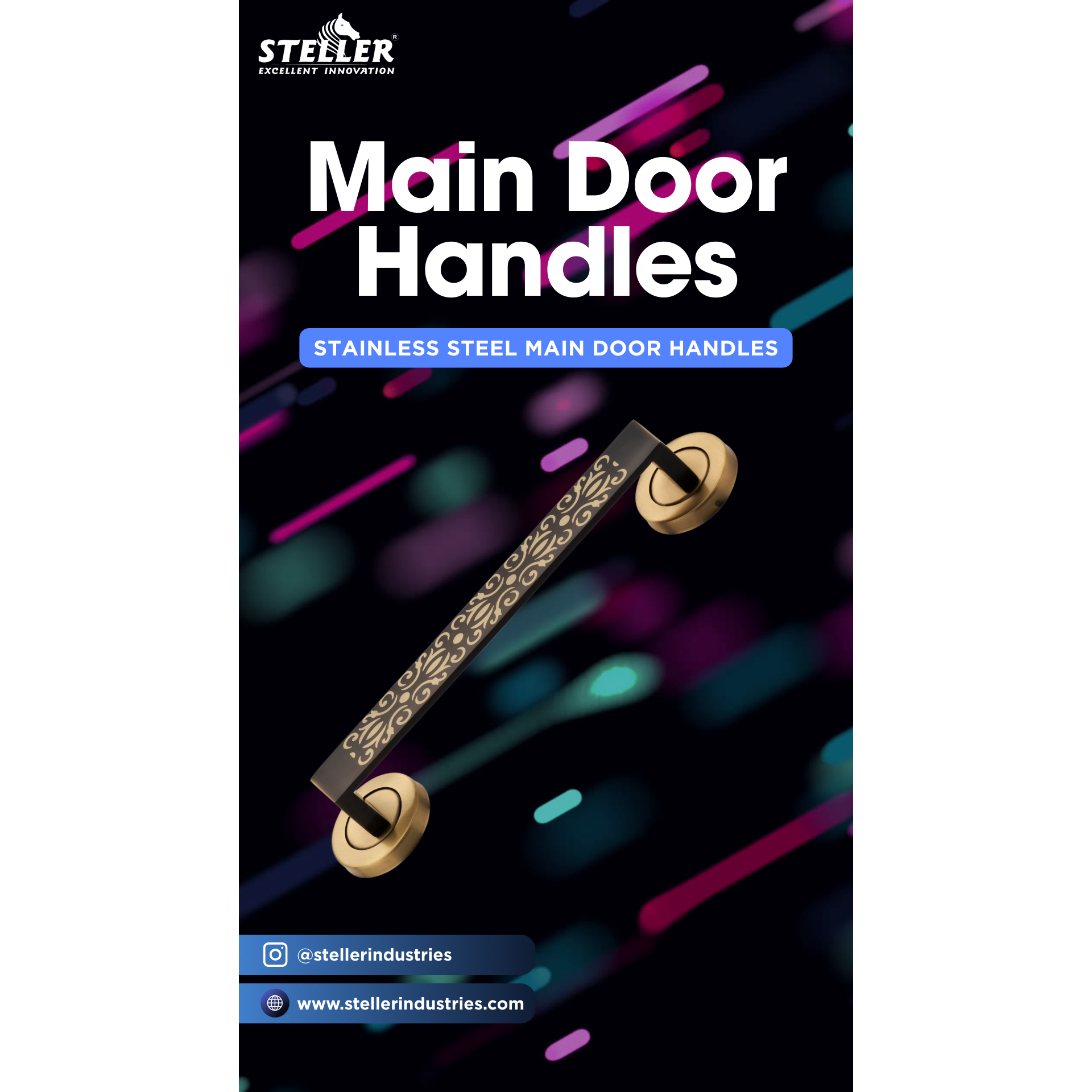 Enhance your entrance with the STELLER Stainless Steel Main Door Handle, a perfect blend of strength, elegance, and functionality. Crafted from premium stainless steel, this handle is built to last with rust-resistance, smooth finishing, and sturdy grip. Available in different sizes, finishes, and stylish patterns, it complements both modern and traditional doors with ease. Whether it’s for residential homes, offices, hotels, or commercial buildings, this designer main door handle ensures durability and adds a touch of luxury to your space. Proudly Made in India, it meets international quality standards, making it the first choice for dealers, wholesalers, architects, and homeowners who value long-lasting quality. stainless steel main door handle, premium door handle, modern stainless steel handle, designer main door handle, heavy duty door handle, stylish stainless steel handle, durable door handle India, high quality door handle, luxury stainless steel handle, main door accessories, door hardware fittings, stainless steel hardware, architectural hardware India, home improvement door handle, rust resistant door handle, premium quality door handle, modern architectural hardware, stainless steel entrance handle, Steller door handle #MainDoorHandle #StainlessSteel #PremiumHardware #DoorAccessories #HomeImprovement #InteriorDesign #ModernHardware #LuxuryHardware #MadeInIndia #StellerIndustries #ArchitecturalHardware #QualityHardware #DurableDesign #StylishHardware #DoorFittings #InteriorSolutions #HomeDecorAccessories #DesignerHandle #SmartHomes #DoorHandles