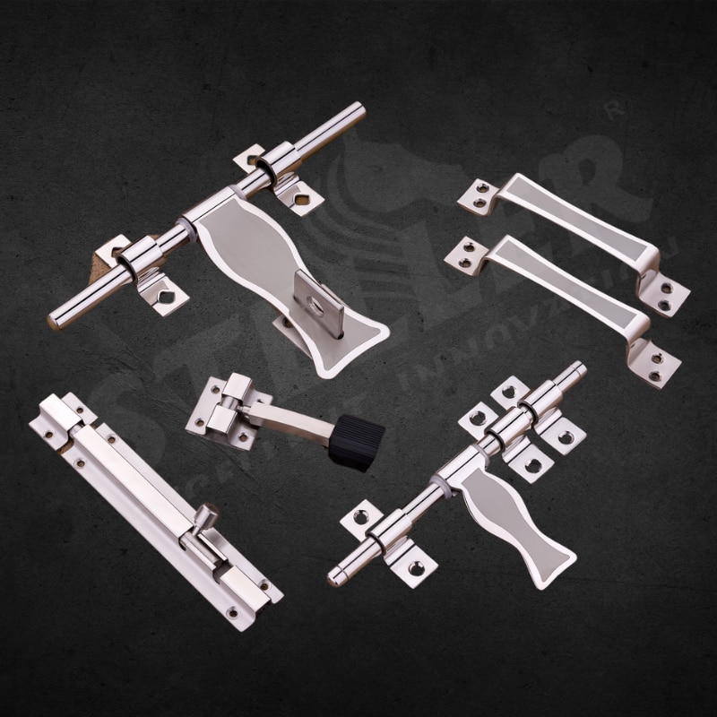 Add a unique aquatic touch to your doorway with our Premium Door Kit featuring the captivating "Fish" laser-cut design. This distinctive kit combines exceptional durability with artistic elegance, providing a complete solution to enhance both the security and style of your doors. It includes 1 Main AL Drop, 2 Stylish Handles, 2 AL Drop Clamps, 1 Door Stopper, 1 Towerbolt, and 1 Latch Handle with 3 Clamps, all finished in high-quality Stainless Steel. The "Fish" design on the AL drop and latch introduces a whimsical, nature-inspired motif that makes your door a standout feature. The Stainless Steel finish offers a sleek, modern look that complements a variety of decor styles. Known for its strength and resistance to corrosion, this finish ensures that your door kit remains both functional and visually appealing over time. The "Fish" laser-cut design features intricate aquatic patterns, adding a playful yet sophisticated element to your doors. Engineered for easy installation, this door kit provides a complete solution for those seeking to blend robust functionality with charming design. Whether upgrading an existing door or fitting a new one, this premium kit ensures a seamless enhancement to both security and style. Key Features: "Fish" Laser-Cut Design: A whimsical and intricate aquatic pattern on the AL drop and latch, inspired by marine life to add a unique touch. Stainless Steel Finish: Provides a sleek, durable, and corrosion-resistant surface for a modern and polished look. Complete Door Kit: Includes AL drop, handles, clamps, door stopper, towerbolt, and latch handle with clamps for a full door solution. Durable and Secure: Designed for long-lasting performance, enhancing both the security and aesthetic appeal of your doors. Easy Installation: Crafted for a straightforward installation process, suitable for various door types. Transform your doors with the Premium Door Kit featuring the "Fish" design, and enjoy a perfect combination of playful charm, modern durability, and artistic sophistication.