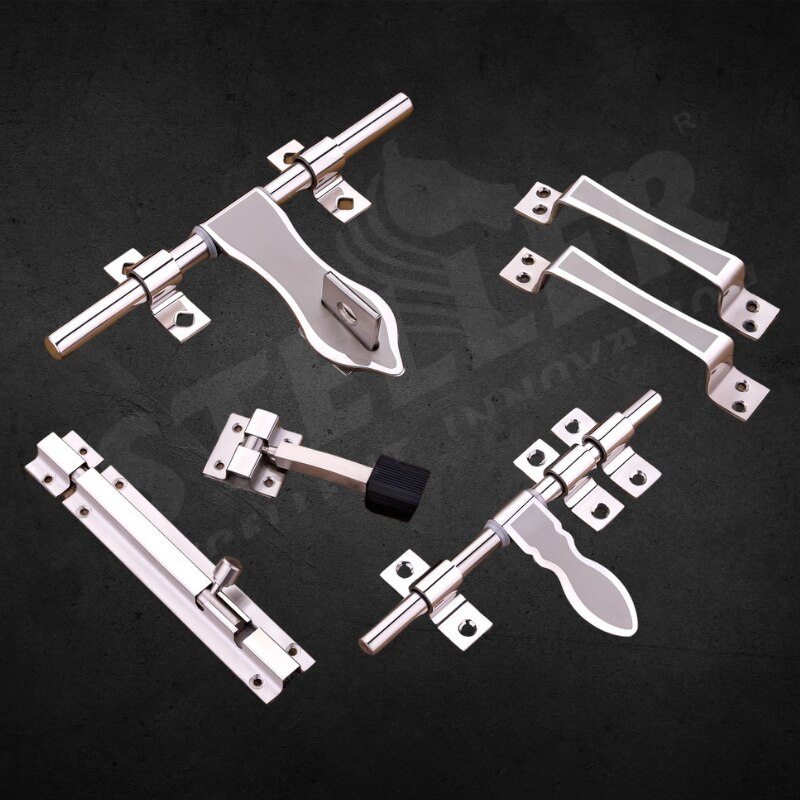 Infuse your doorway with a touch of nature-inspired elegance using our Premium Door Kit featuring the enchanting "Leaves" laser-cut design. This comprehensive kit blends exceptional durability with artistic flair, offering a complete solution for enhancing both the security and aesthetic appeal of your doors. It includes 1 Main AL Drop, 2 Elegant Handles, 2 AL Drop Clamps, 1 Door Stopper, 1 Towerbolt, and 1 Latch Handle with 3 Clamps, all crafted from high-quality Stainless Steel. The "Leaves" design on the AL drop and latch introduces a sophisticated, nature-inspired motif that transforms your door into a beautiful focal point. The Stainless Steel finish provides a sleek and modern appearance that seamlessly complements a variety of decor styles. Renowned for its durability and resistance to corrosion, this finish ensures that your door kit remains both functional and visually appealing over time. The "Leaves" laser-cut design features delicate, nature-inspired patterns that add a touch of organic beauty and refinement to your doors. Engineered for easy installation, this door kit offers a complete solution for those seeking to combine functionality with nature-inspired design. Whether upgrading an existing door or installing a new one, this premium kit ensures a seamless enhancement to both security and style. Key Features: "Leaves" Laser-Cut Design: An elegant and intricate pattern on the AL drop and latch, inspired by nature to add a touch of organic beauty. Stainless Steel Finish: Offers a sleek, durable, and corrosion-resistant surface for a modern and polished look. Complete Door Kit: Includes AL drop, handles, clamps, door stopper, towerbolt, and latch handle with clamps for a full door solution. Durable and Secure: Designed for long-lasting performance, enhancing both the security and aesthetic appeal of your doors. Easy Installation: Crafted for a hassle-free installation process, suitable for various door types. Enhance your doors with the Premium Door Kit featuring the "Leaves" design, and enjoy a blend of nature-inspired elegance, modern durability, and refined charm.